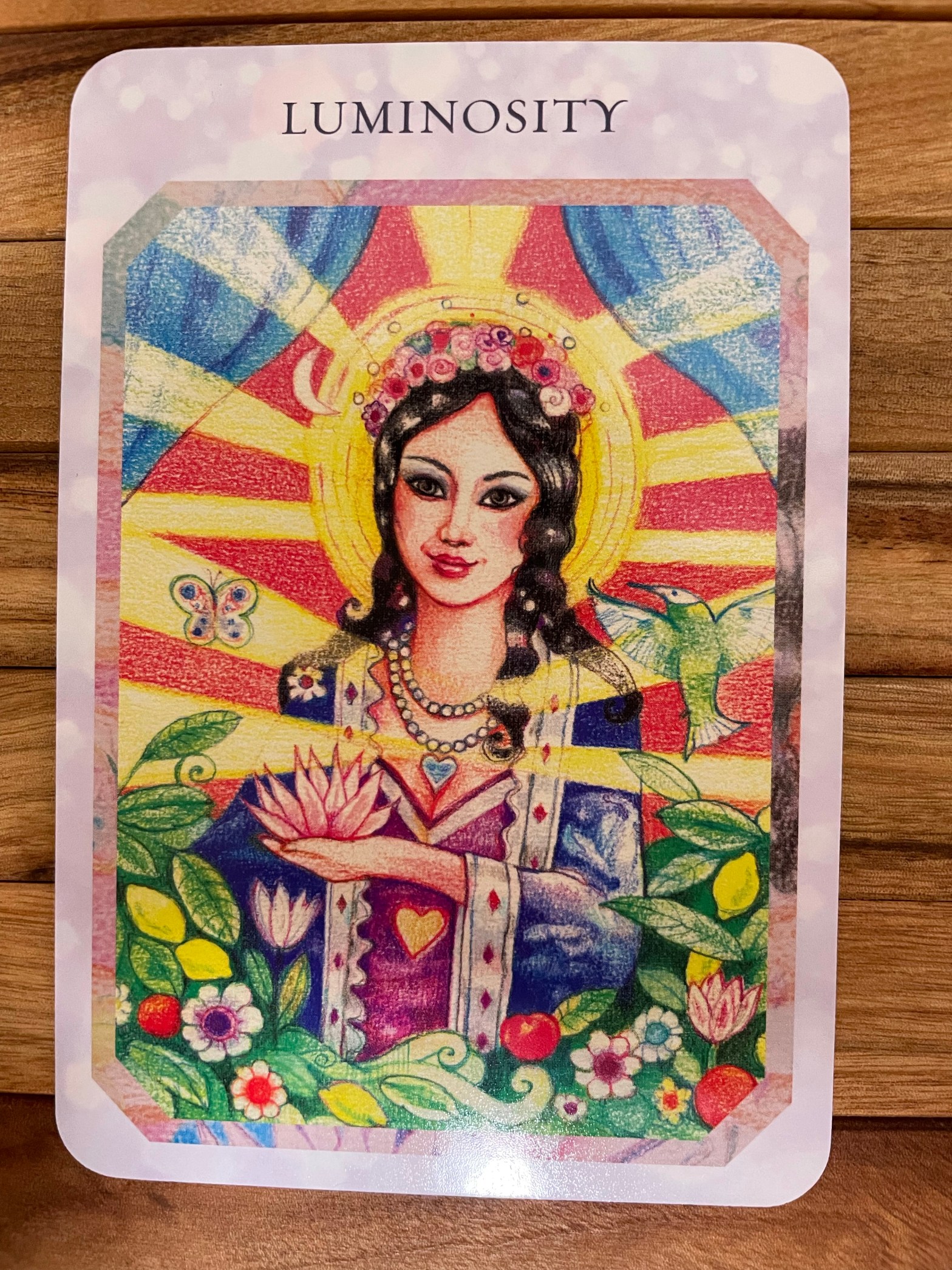 TRUE LOVE READING CARDSの21枚目のカードは LUMINOSITY 明るさ 蓮の花を手のひらにのせた女性から光が発光していますね! LUMINOSITY には 輝き、明度、発光物という意味があります続きを読む “LUMINOSITY 明るさ”