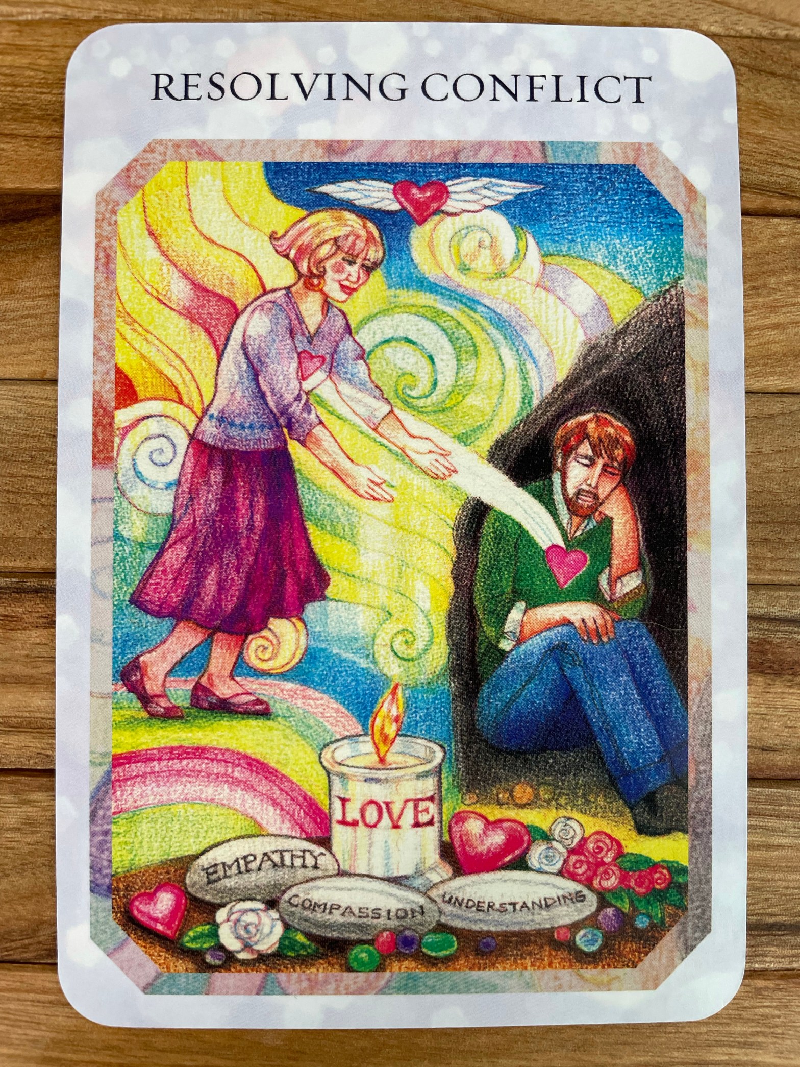 TRUE LOVE READING CARDSの26枚目のカードは RESOLVING CONFLICT 対立の解決 闇の中にいる男性に手を差し伸べる女性。ハートが通じ合っている様子が描かれています。 RESOLVING続きを読む “RESOLVING CONFLICT 対立の解決”