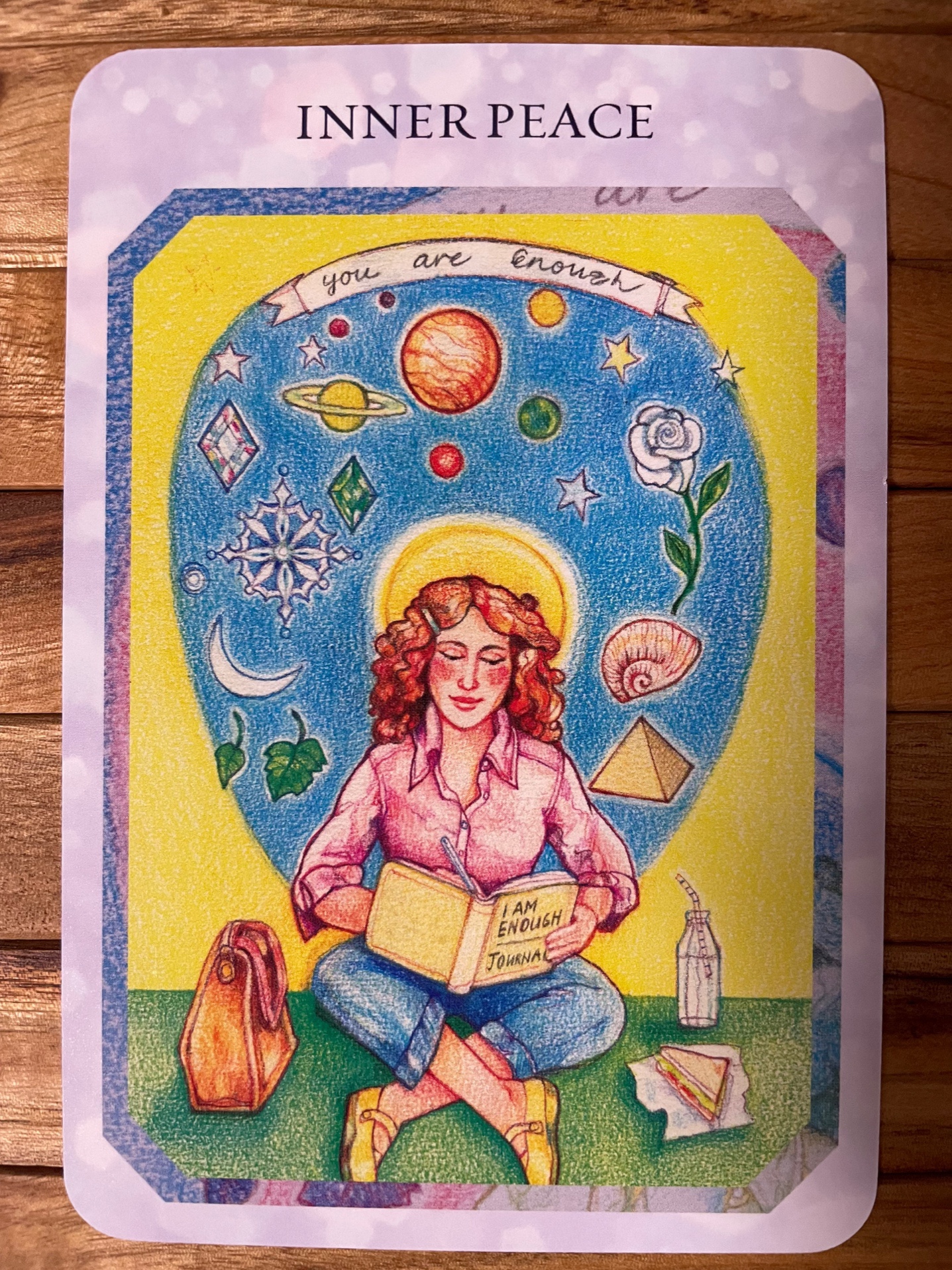 TRUE LOVE READING CARDSの17枚目のカードは INNER PEACE 内なる平和 女性がI AM ENOUGH と書かれたノートに何かを書き込んでいますね。 心の平穏、満たされている感覚。 反対側は続きを読む “INNER PEACE 内なる平和”